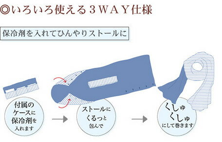 付属のケースに保冷剤を入れてストールにくるっと包めばひんやりマフラー ボタン留めアレンジして、ボレロ風やポンチョ風 ダブルガーゼ仕立てでおしゃれな色づかい。