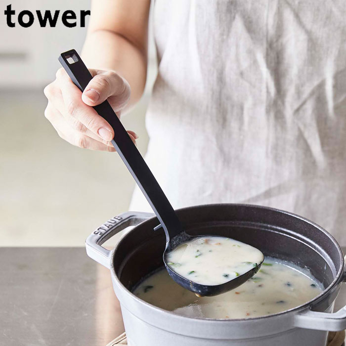 お玉 シリコーンお玉 タワー tower 山崎実業 シリコン 食洗機対応 ( シリコン製 シリコーン 調理 キッチンツール レードル towerシリーズ 白 黒 計量スプーン 調理スプーン キッチン yamazaki )【3980円以上送料無料】